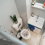 L'appartement Casa Tudor est équipé d'une salle de bains dotée d'un sèche-cheveux, des draps de bain et des pantoufles. Une douche à l'italienne et une toilette séparée sont aussi disponibles.